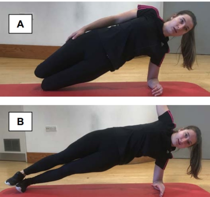 Một số bài tập có thể khuyến cáo như là bắt cầu, tập mạnh cơ dạng háng ở tư thế nằm nghiêng, squat với theraband, bước lên xuống bục…