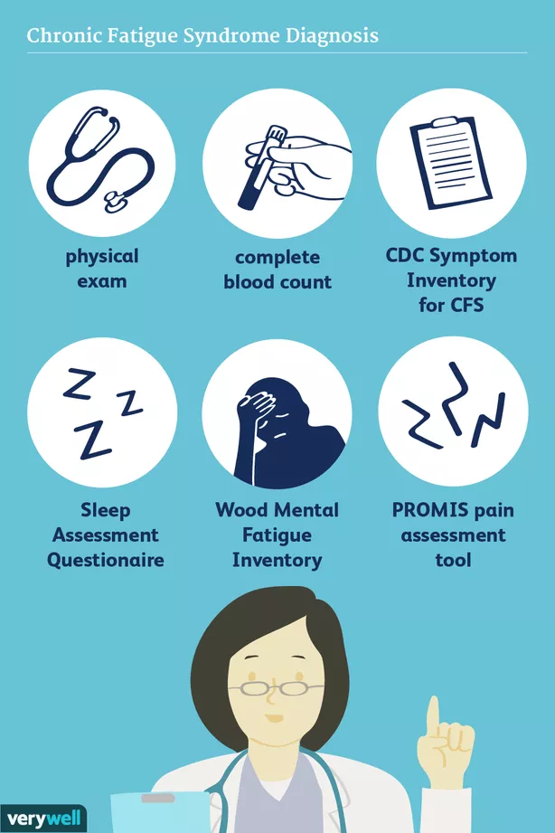 - Lượng giá mệt mỏi: Các bác sĩ điều trị có thể gặp khó khăn trong chẩn đoán hội chứng mệt mỏi mạn tính, đặc biệt là do không thừa nhận chẩn đoán mệt mỏi khi mệt mỏi khởi phát diễn ra từ từ hoặc bởi sự đa dạng của các báo cáo về mệt mỏi của bệnh nhân. Một số công cụ được phát triển để đánh giá mức độ mệt mỏi, như Checklist Individual Strength (Bảng kiểm Sức mạnh Cá nhân), the Chalder Fatigue Scale (Thang đo Mệt mỏi Chalder), và the Krupp Fatigue Severity Scale (Thang đo Mức độ Mệt mỏi Krupp), được sử dụng rộng rãi trong các nghiên cứu và có thể giúp các bác sĩ đánh giá mệt mỏi một cách khách quan và thiết lập chẩn đoán.