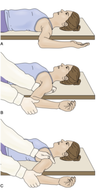 - Phương pháp FARES được thực hiện với bệnh nhân nằm ngửa và người thực hiện giữ cổ tay bệnh nhân ở tư thế trung tính và nhẹ nhàng dạng vai trong khi vẫn giữ một lực kéo nhẹ nhàng và các chuyển động dao động dọc. Khi cánh tay dạng qua góc 90 độ, khi đó nhẹ nhàng xoay ngoài cánh tay trong khi vẫn giữ lực kéo dọc, dạng và chuyển động dao động dọc liên tục.