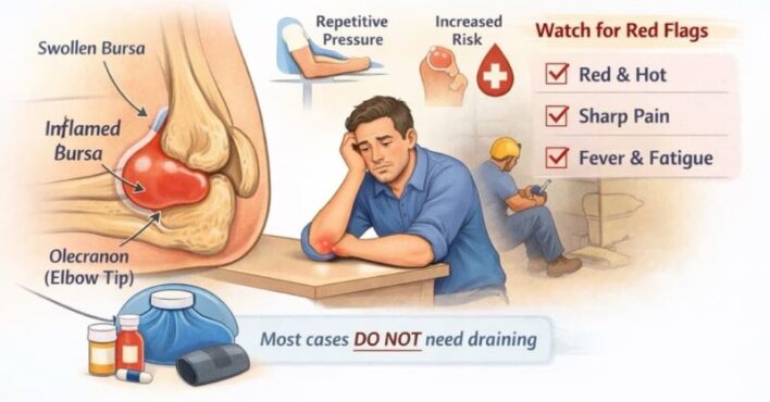 Viêm bao hoạt dịch mỏm khuỷu là tình trạng viêm – ứ dịch của túi hoạt dịch nông nằm phía sau mỏm khuỷu, đóng vai trò như lớp đệm giữa da và mỏm khuỷu.