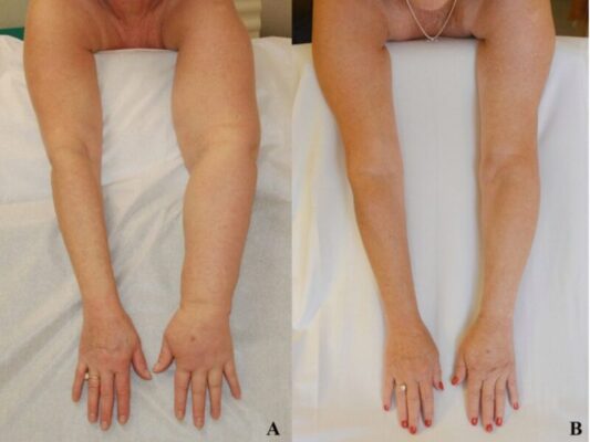 - Sau 3 tháng điều trị tích cực, tình trạng phù tay trái của bệnh nhân cải thiện đáng kể.