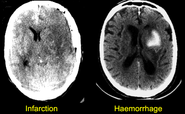 Đột quỵ được chia thành hai thể: nhồi máu não hoặc chảy máu não.