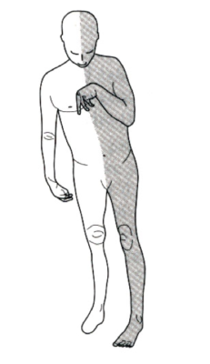 - rối loạn về cảm nhận không gian và định vị cơ thể (tổn thương bán cầu não phải kèm liệt nửa người trái): không chú ý một bên (neglect)
