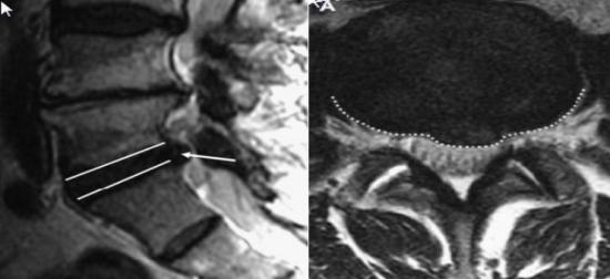 HÌnh 5: Hình ảnh thoát vị đĩa đệm qua chụp cộng hưởng từ.