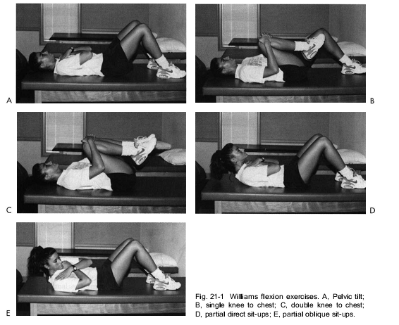 Chương trình tập Williams chủ yếu dựa trên các tư thế gập, được dùng để điều trị cho bệnh nhân lớn tuổi, thoái hóa.