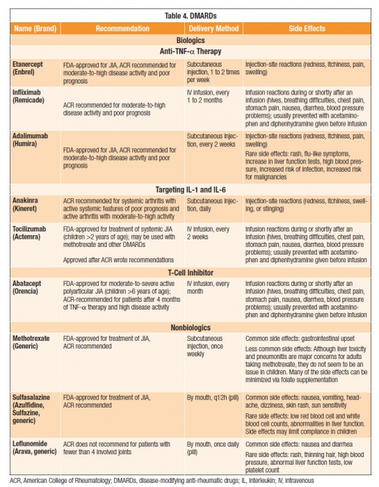 Các thuốc sử dụng trong JIA có thể bao gồm 1 hoặc vài loại thuốc sau: