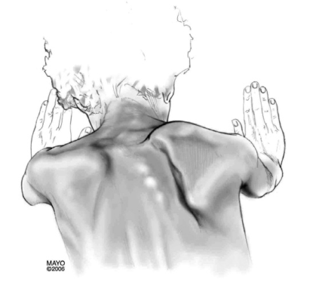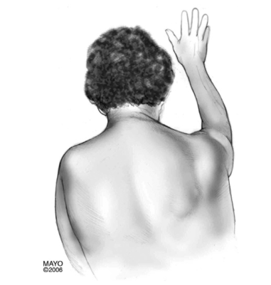 - bả vai hở cánh bên trong (medial winging): hở ở phía bờ trong xương bả vai, do yếu cơ răng trước