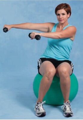 Trong khi người tập giữ thăng bằng khi ngồi trên một bề mặt không ổn định: