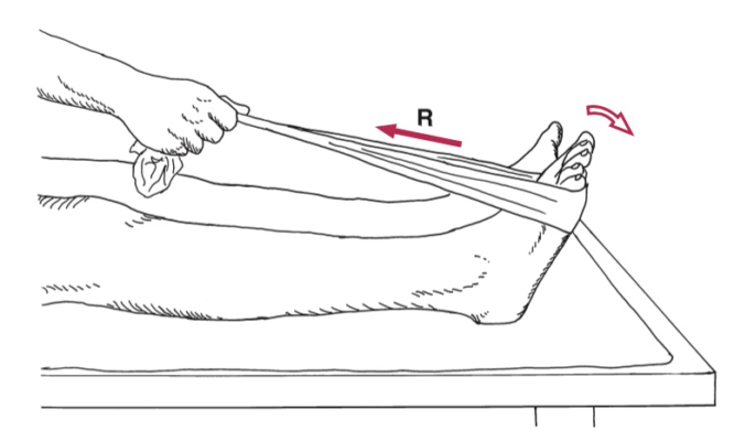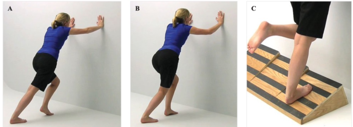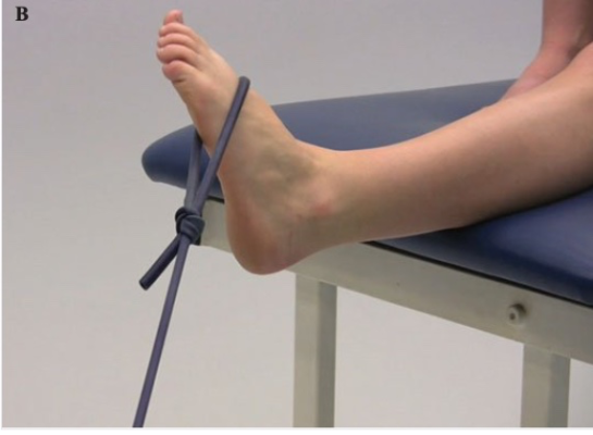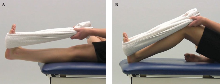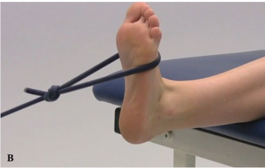 Ví dụ kéo dãn cơ bụng chân bằng dây vải, bằng trọng lượng