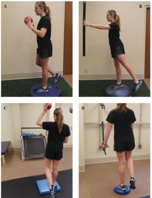 Tập thăng bằng một chân trong khi thực hiện hoạt động chức năng