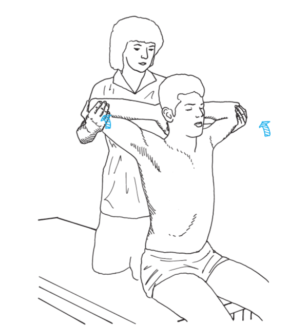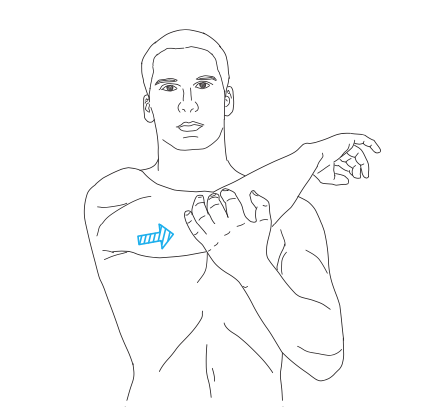 Đặt một cuộn khăn nhỏ dưới hõm nách và nhẹ nhàng kéo tay sang bên đối diện.