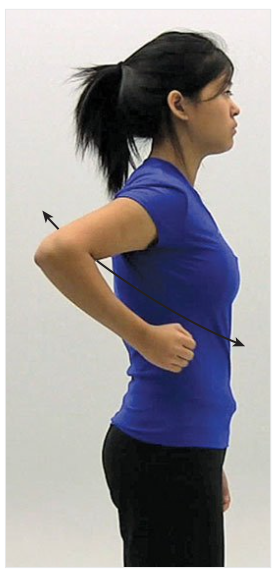 Đặt bàn tay của vai cần di động lên bàn ở phía sau lưng, dùng tay kia kéo nhẹ phần trên của cánh tay xuống dưới.
