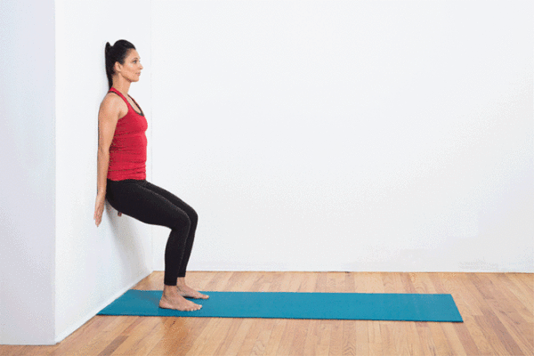 Trượt tường tư thế đứng, mini-Squat, squat, ngồi xuống đứng lên từ ghế, leg press, lunge, bước lên bước xuống bục…