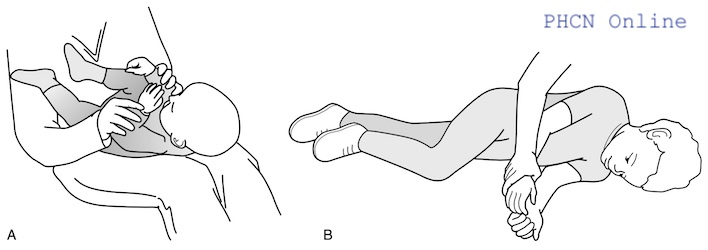 Ngoài ra, hãy cố gắng dụ trẻ lăn sang một bên trước khi cố gắng để trẻ ngồi. Cũng có thể sử dụng một món đồ chơi để khuyến khích trẻ với tay để lăn. Có thể giảm tác động của trọng lực bằng cách sử dụng một bề mặt nâng cao, chẳng hạn như một cái nệm tam giác, dưới đầu và thân trên để giúp bạn dễ dàng chuyển sang tư thế nằm nghiêng trước khi chuyển sang tư thế ngồi.