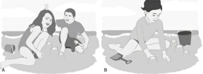 Hải và Hà đang chơi trong hộp cát, đổ cát lên nhau. Hai em cười và quan sát những tín hiệu với nhau với nghĩa là, “OK. Chúng mình vẫn đang chơi.” Trò chơi tiếp tục và Hà bắt đầu đổ cát lên đầu Hải. Em nhận được một cái nhìn nghiêm nghị từ Hải. Tín hiệu phi ngôn ngữ này có nghĩa là, “Này, cát đổ hơi gần với mắt mình. Mình không thích điều đó.” Hà đáp lại bằng một nụ cười có nghĩa rằng, “Rất tiếc! Mình xin lỗi,” và thay vào đó đổ cát lên tay của Hải. Phản ứng không lời của bé nghĩa là, “Được rồi, mình sẽ cẩn thận hơn.” Việc trao đổi tín hiệu này cho phép trò chơi tiếp tục trong khi trẻ học cách chú ý đến nhau. Chúng đang học các quy tắc và ranh giới của trò chơi.