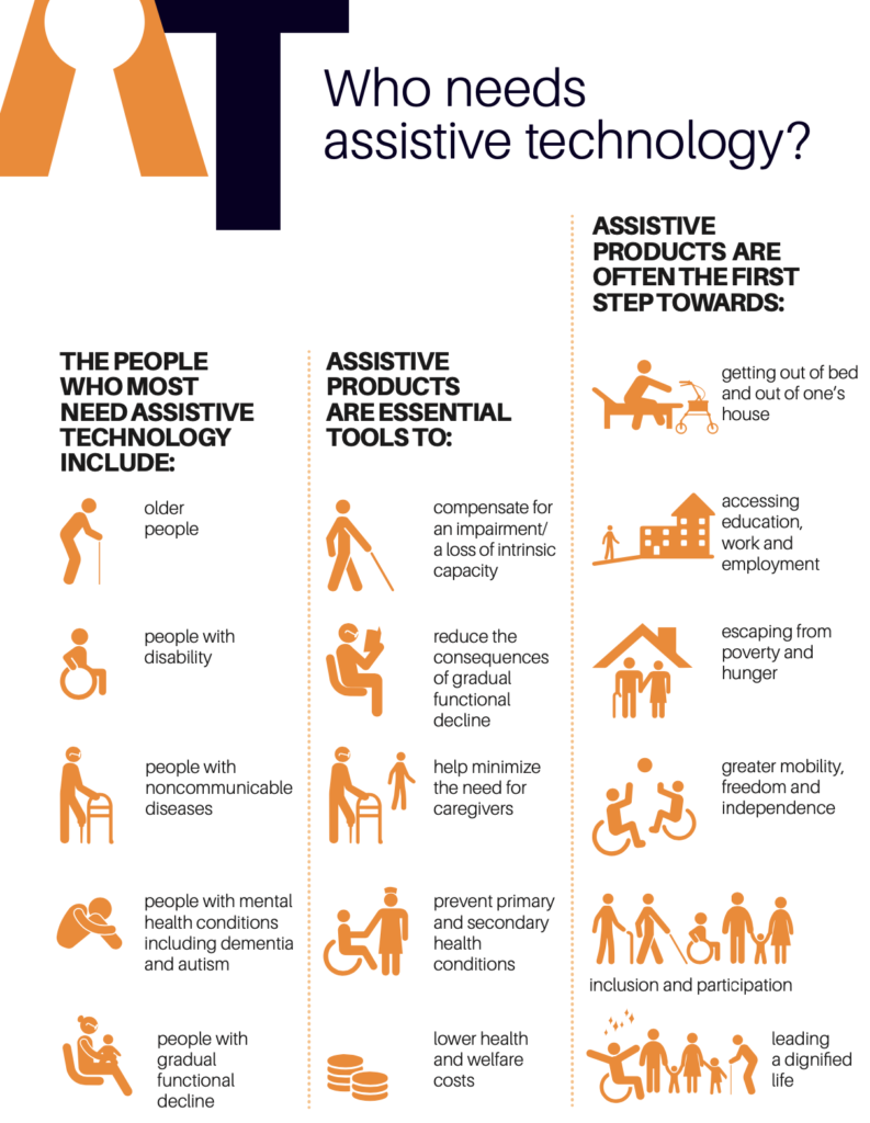 Nó giúp người khuyết tật di chuyển, giao tiếp hiệu quả hơn, nghe và nhìn tốt hơn và tham gia đầy đủ hơn vào các hoạt động học tập, làm việc và vui chơi giải trí.