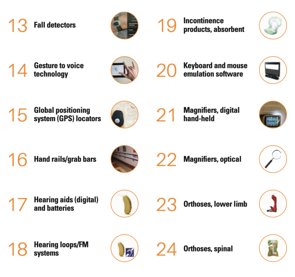 Từ ICF, Tổ chức Chuẩn hoá Quốc tế (ISO) định nghĩa các sản phẩm trợ giúp một cách rộng hơn là bất cứ sản phẩm, được sản xuất đặc biệt hoặc phổ thông, được sử dụng bởi hoặc dành cho người khuyết tật: để tham gia; để bảo vệ, nâng đỡ, tập luyện, đo lường hoặc thay thế các cấu trúc/chức năng cơ thể và các hoạt động; hoặc để phòng ngừa các khiếm khuyết, giới hạn hoạt động và hạn chế tham gia. Chúng bao gồm các dụng cụ, công cụ và phần mềm.