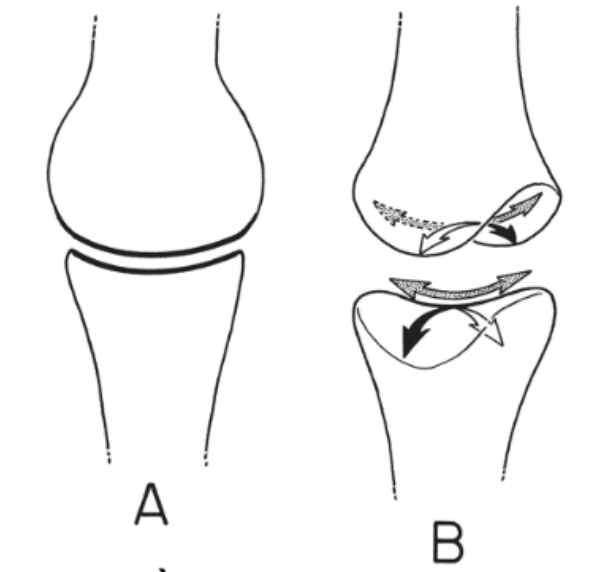 Khi một xương lăn lên xương kia, ép khớp cũng xảy ra ở phía xương đang gập góc.