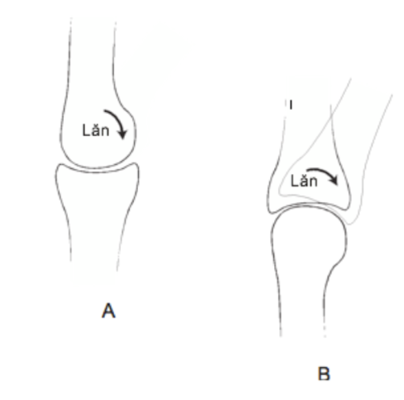 Ở khớp chức năng bình thường, lăn đơn thuần không xảy ra mà kết hợp với trượt và xoa