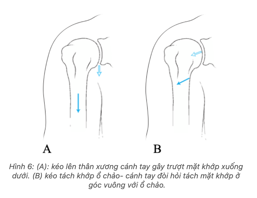 Kéo (Traction) và tách (distraction) không đồng nghĩa. Kéo là kéo dọc. Tách là phân tách hai mặt khớp ra. Tách không luôn luôn xảy ra khi lực kép tác động lên trục dài của xương. Ví dụ nếu kéo áp dụng vào thân xương cánh tay, kết quả là trượt mặt khớp (H6 A). Tách khớp ổ chảo- cánh tay đòi hỏi kéo xương cánh tay một góc vuông với ổ chảo (H6 B).