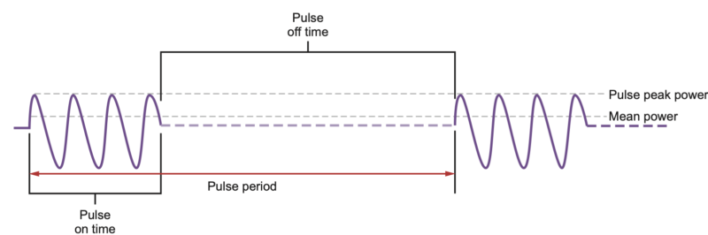 Công suất đỉnh (W) × Thời gian xung (s) × Tần số xung = Công suất trung bình - Ví dụ: Nếu công suất đỉnh của một thiết bị PSWD là 250 W, thời gian xung là 0.0004 giây, và tần số xung được cài đặt ở 145 Hz, thì công suất trung bình là 14.5 W.