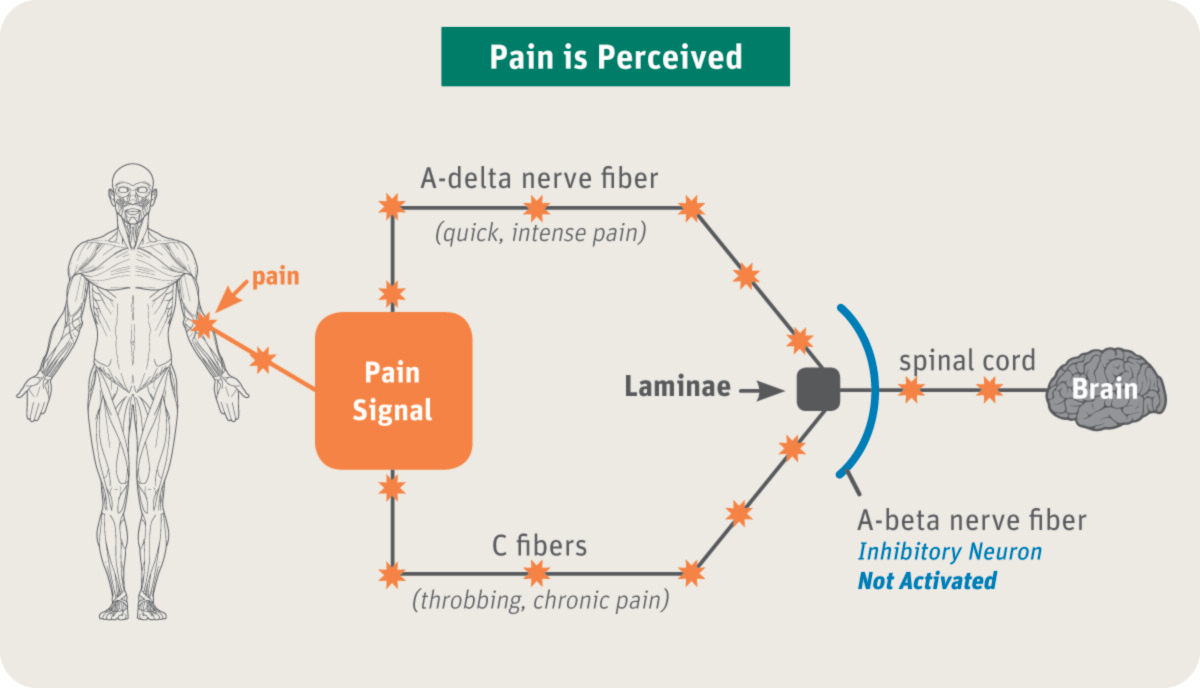 Dây thần kinh A-beta có thể được kích hoạt bằng các xung điện thời gian ngắn hay dài. Tuy nhiên, các xung có thời gian xung ngắn, từ 50 đến 80 micro giây và với một cường độ dòng tạo một mức cảm giác dễ chịu sẽ hoạt hóa có chọn lọc các dây thần kinh này mà không kích hoạt các dây thần kinh vận động. Tần số xung từ 100 đến 150 nhịp mỗi giây (Hz) được thấy là phù hợp nhất cho ứng dụng này.