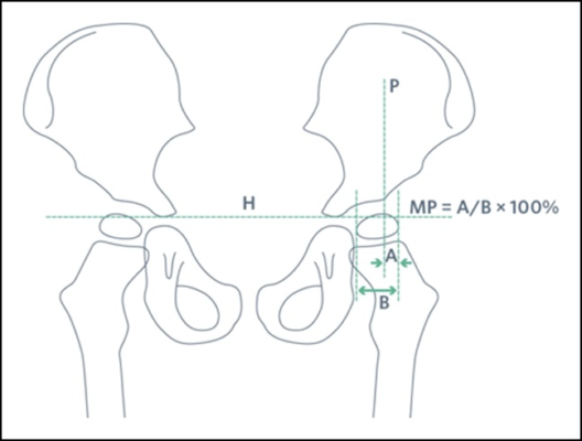 - Chụp X quang khớp háng thẳng và đo Phần trăm Di lệch (MP, Migration percentage)