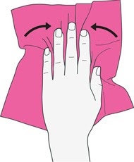 - Kéo các ngón tay lại với nhau bằng cách ấn bàn tay xuống bàn và chụm khăn vào giữa các ngón tay.