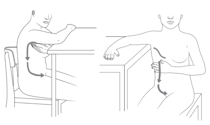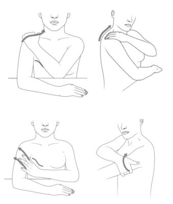 - Dùng tay lành nhẹ nhàng vuốt từ vùng nách lên phía trên vai và cổ. Lặp lại 10-15 lần.
