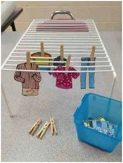- Khi trẻ thành thạo với nhiệm vụ này, hãy để cháu kẹp đồ vải trên dây phơi.
