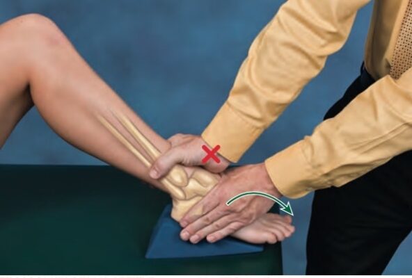 - Using your hand contacts, provide a fulcrum over the talus and apply a distraction force as the ankle is moved into greater ranges of dorsiflexion.