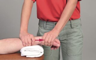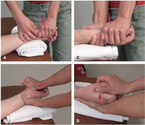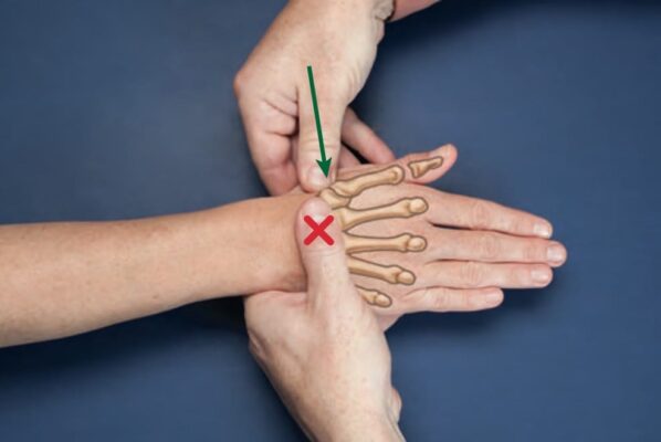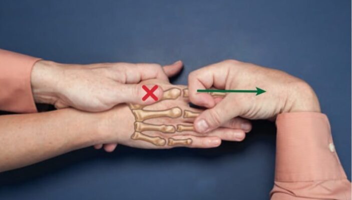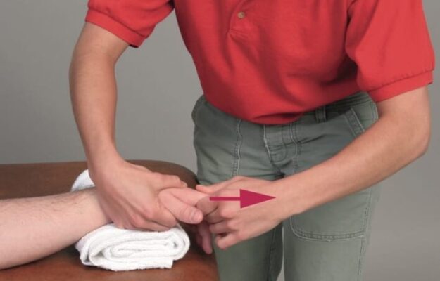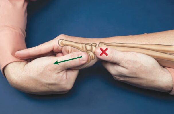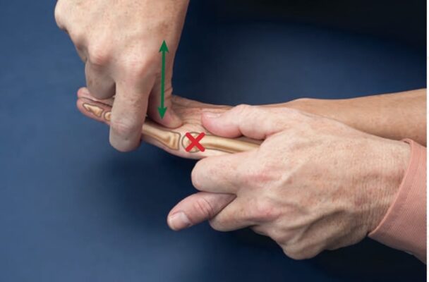 - Stabilization hand: grasp the metacarpal head between the thumb and index finger.