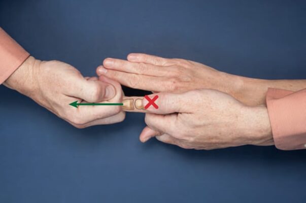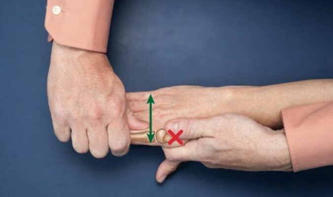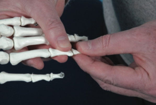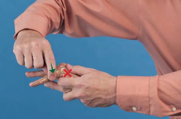- Stabilization hand: grasp the proximal phalanx between the thumb and index finger.
