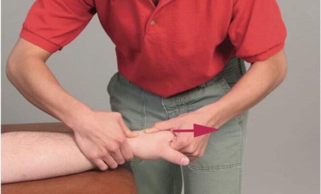 - Patient Position: sitting position with the forearm fully pronated and the palm facing downward. You may pre-position the hand with the joint at the point of restriction.