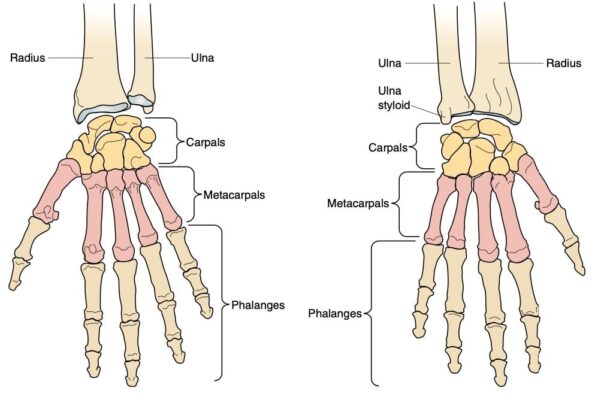 - Carpals: Các xương cổ tay (gồm hai hàng, thuyền nguyệt tháp đậu/thang thê cả móc)