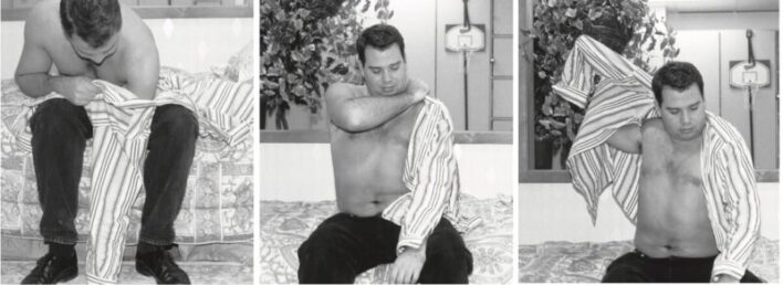 2. Kéo tay áo sơ mi qua vai liệt.