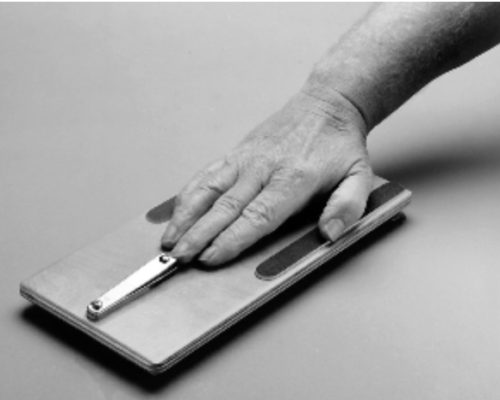 3. Việc giũa móng tay của bàn tay lành có thể được thực hiện theo nhiều cách khác nhau, chẳng hạn một bảng nhám hoặc giấy nhám dán vào một miếng gỗ, dũa móng tay được cố định vào bàn với băng dán …