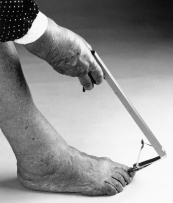 Việc cắt móng chân sẽ dễ dàng hơn nếu bàn chân được ngâm trong nước ấm trước. Có thể sử dụng dụng cụ cắt móng chân có cán dài để cắt móng chân, cho phép tiếp cận ngón chân mà ít phải cúi người.