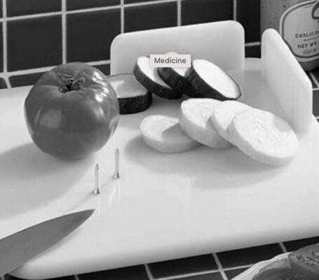 Thớt được thiết kế để sử dụng một tay có thể làm bằng gỗ, nhựa, formica, có chân đế cao su hít để cố định thớt khỏi di chuyển/ Các đinh bằng sắt không gỉ để cố định thức ăn để cắt, chặt. Có thể dễ dàng chế với thớt gỗ và gắn thêm đinh inox.