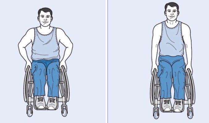 Bệnh nhân bị liệt nửa người dưới từ ngực và liệt tứ chi C6 cũng sử dụng các điều chỉnh tư thế bù trừ để ngồi không được hỗ trợ.