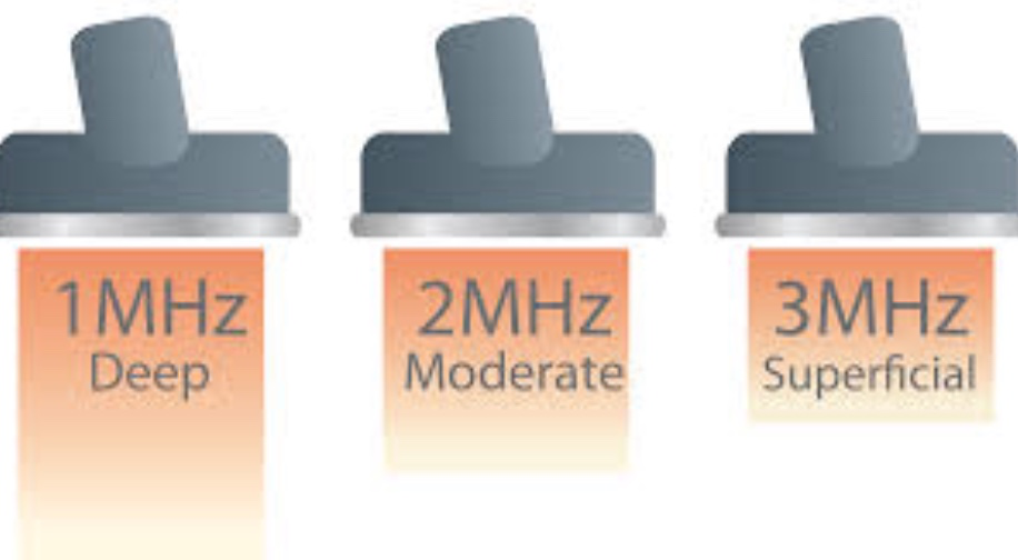 - Tần số: Tần số được lựa chọn tùy theo độ sâu của mô được điều trị. Đối với mô sâu lên đến 5 cm, sử dụng tần số 1 MHz g, và 3 MHz được sử dụng cho các mô sâu 1-2 cm. Độ xuyên sâu thấp hơn ở các mô có hàm lượng collagen cao và ở các vùng tăng phản xạ.