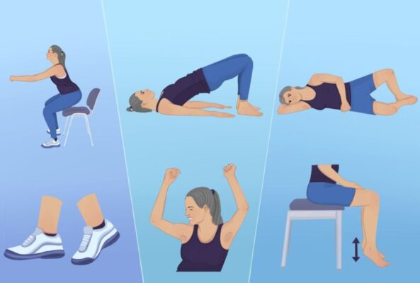 - Thăng bằng + Giãn cơ: 2–3 ngày/tuần