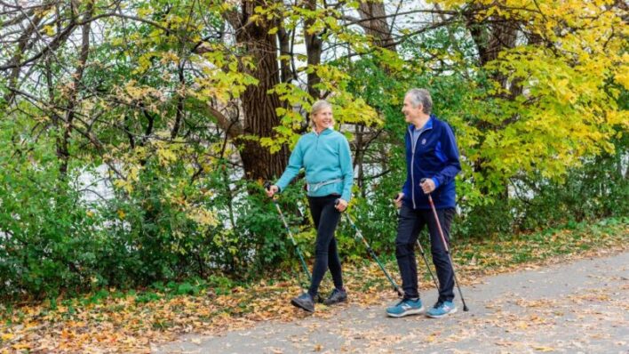 - Đi bộ theo nhịp, hoặc đi bộ với hai gậy (pole walking)
