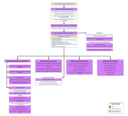 - Thảo luận sớm về tác động của sức khỏe đường hô hấp đối với tỷ lệ mắc bệnh và tử vong với cha mẹ / người chăm sóc trẻ em bị bại não. Điều này rất quan trọng đối với những người có nguy cơ mắc bệnh cao; nghĩa là những người bị bại não có GMFCS Mức V và những người bị rối loạn nuốt.
