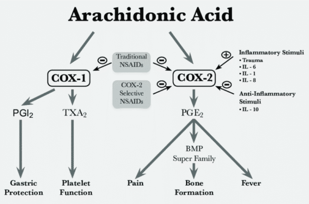 - Viêm và Đau: Trong quá trình viêm, COX-2 được cảm ứng và sản xuất prostaglandin tại vị trí viêm. PGE2 và PGI2 đóng vai trò quan trọng trong các dấu hiệu viêm như sưng, nóng, đỏ, đau. PGE2 đặc biệt liên quan đến việc tăng cường cảm giác đau và gây sốt.