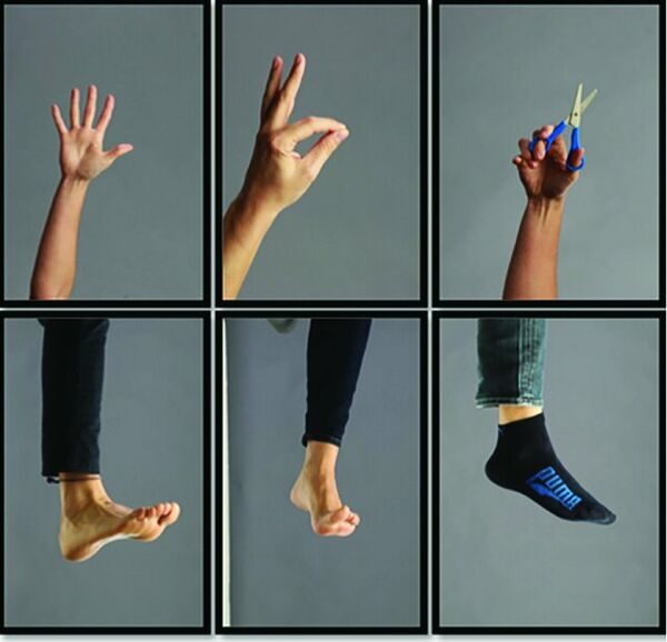 - Phương pháp: Bệnh nhân được cho xem một chuỗi các hình ảnh của chi thể bị ảnh hưởng và được yêu cầu xác định từng hình ảnh là bên phải hay bên trái. Có thể sử dụng ứng dụng nhận dạng, hoặc thẻ tranh hoặc hình cắt từ tạp chí.