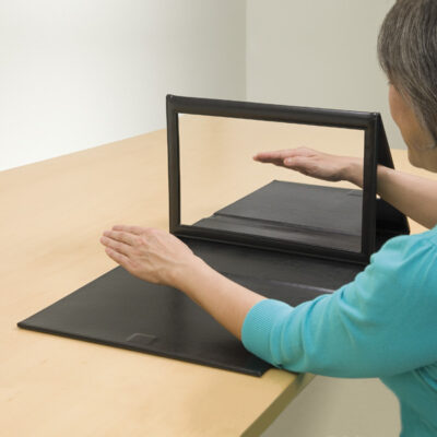 - Từ từ bắt đầu vận động đồng đều của cả hai chi trong khi nhìn vào hình ảnh phản chiếu. Bên bị ảnh hưởng chỉ di chuyển đến điểm bắt đầu đau, trong khi bên không bị ảnh hưởng (và kết quả là vận động bị phản ánh) tiếp tục đủ tầm vận động.