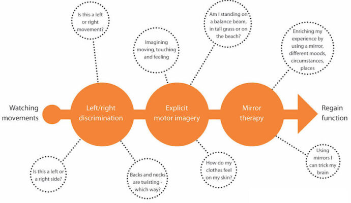 - Điều này thường bắt đầu bằng việc bệnh nhân học cách thực hành tưởng tượng như nhìn rõ phần cơ thể bị ảnh hưởng.