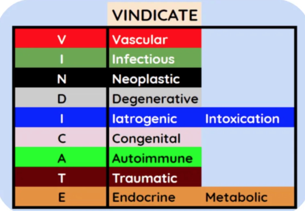 Để dễ nhớ các nguyên nhân khi chẩn đoán phân biệt một trường hợp bệnh khó, có nhiều cách lựa chọn. Sau đây là 3 cách để nhớ tuỳ bạn chọn như sau: