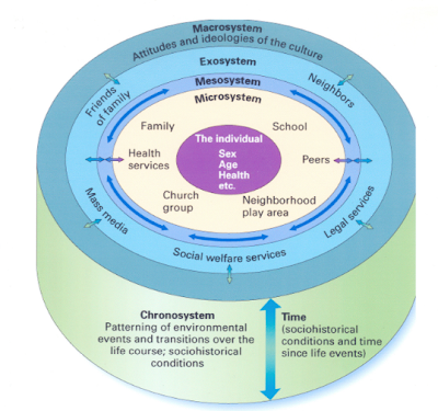 Hệ sinh thái của Bronfenbrenner: cho rằng có 5 mức độ môi trường ảnh hưởng đồng thời cá nhân.